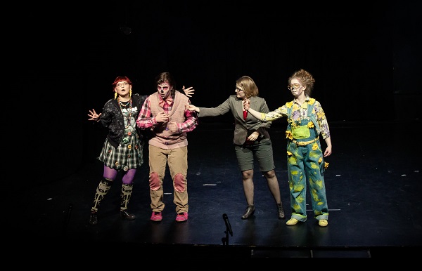 Tämän kirjoituksen pääkuvassa ovat Pahat Wirtaset (Noora Novitsky, Kasper Mobarak ja Hanna Viinanen) sekä presidentti (Emilia Kesseli). Kuva: Tuukka Salminen.