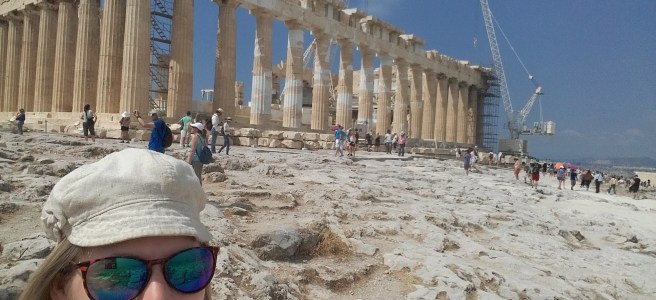 Kaikki tämän kirjoituksen kuvat ovat blogin kirjoittajan Meri Liukkosen ottamia. Ethän kopioi kuvia blogista ilman lupaa, kiitos! Pääkuvassa Meri patsastelee Parthenonin edessä.