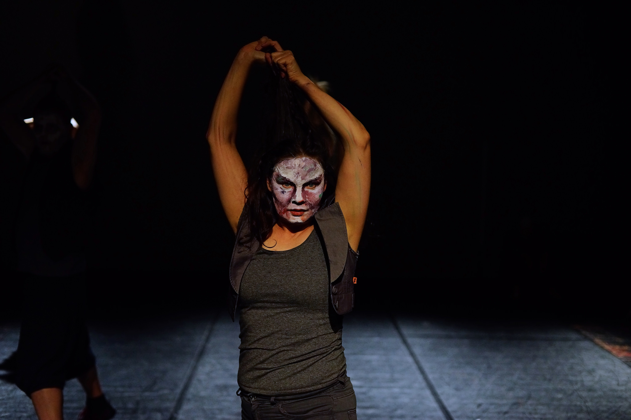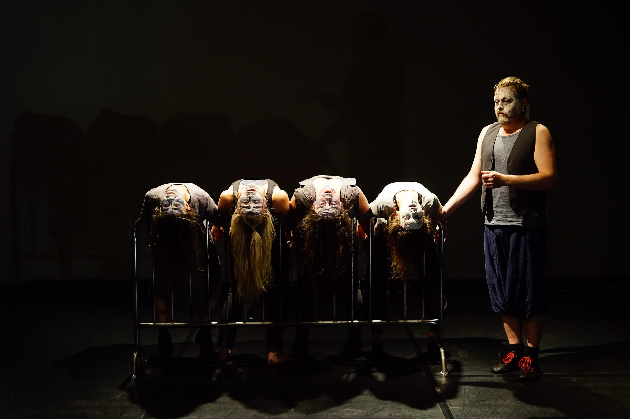 Koreografiasta vastaa Perko, musiikista ja valoista puolestaan Boswell. Näyttelijät on meikattu zombimaisilla maskeilla. Lavastusta on niukasti, ja kuolleiden ja elävien välistä rajaa edustavat helposti siirreltävät metalliaidat. Tilaa käytetään monipuolisesti.
