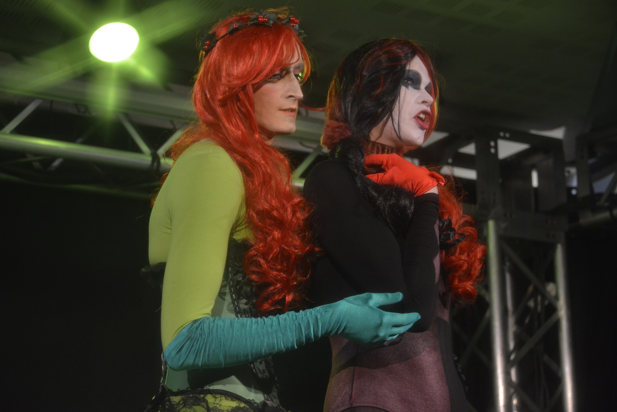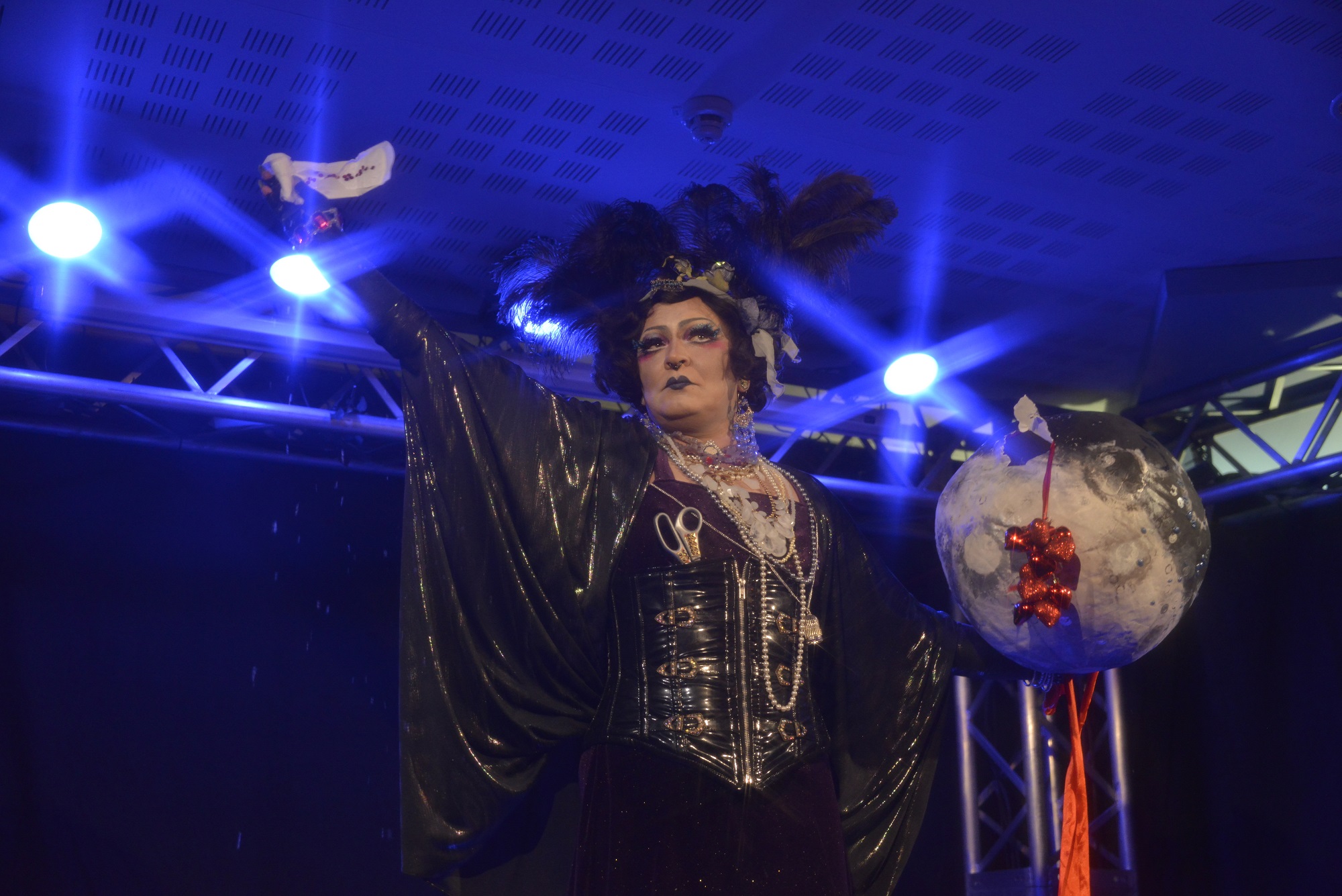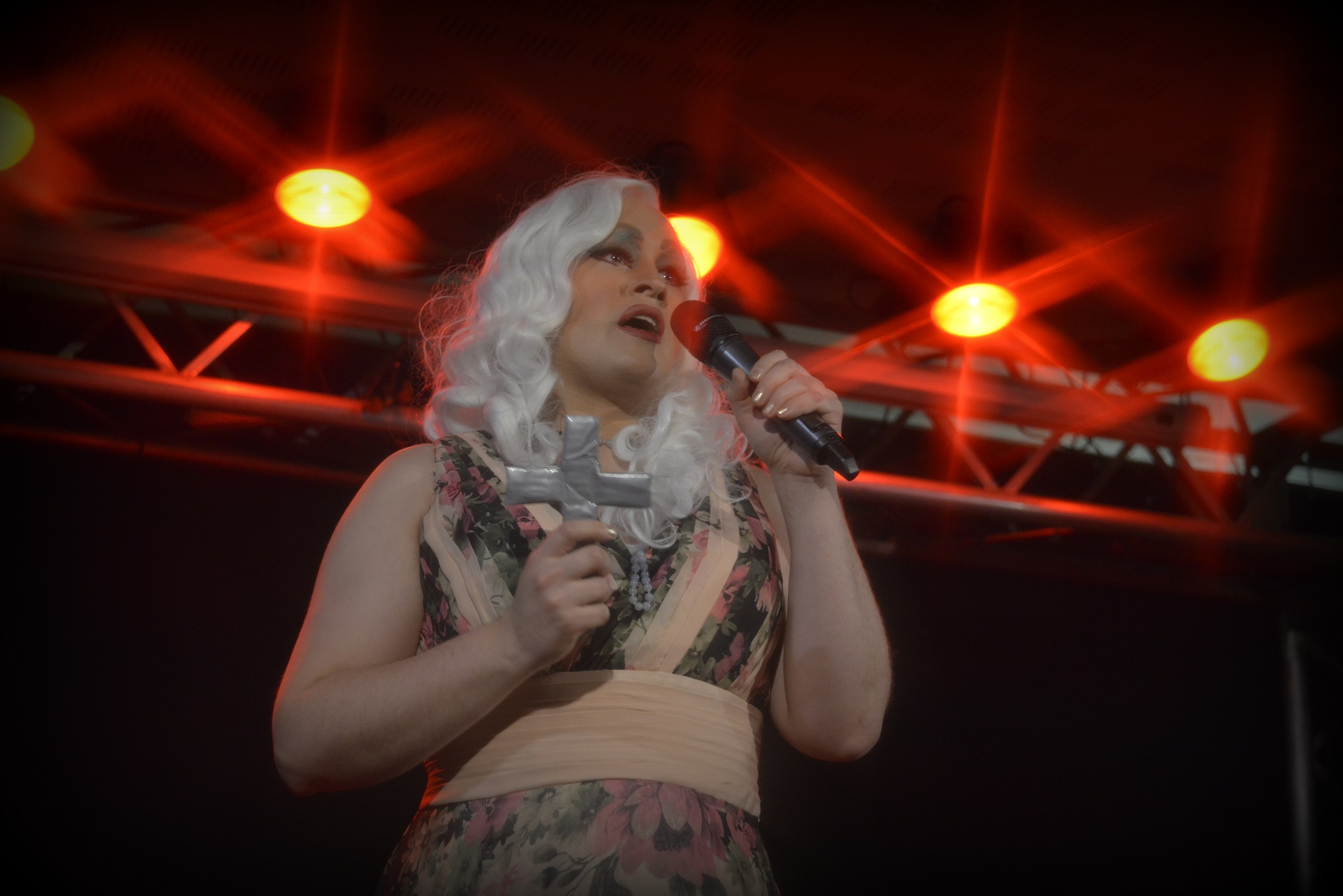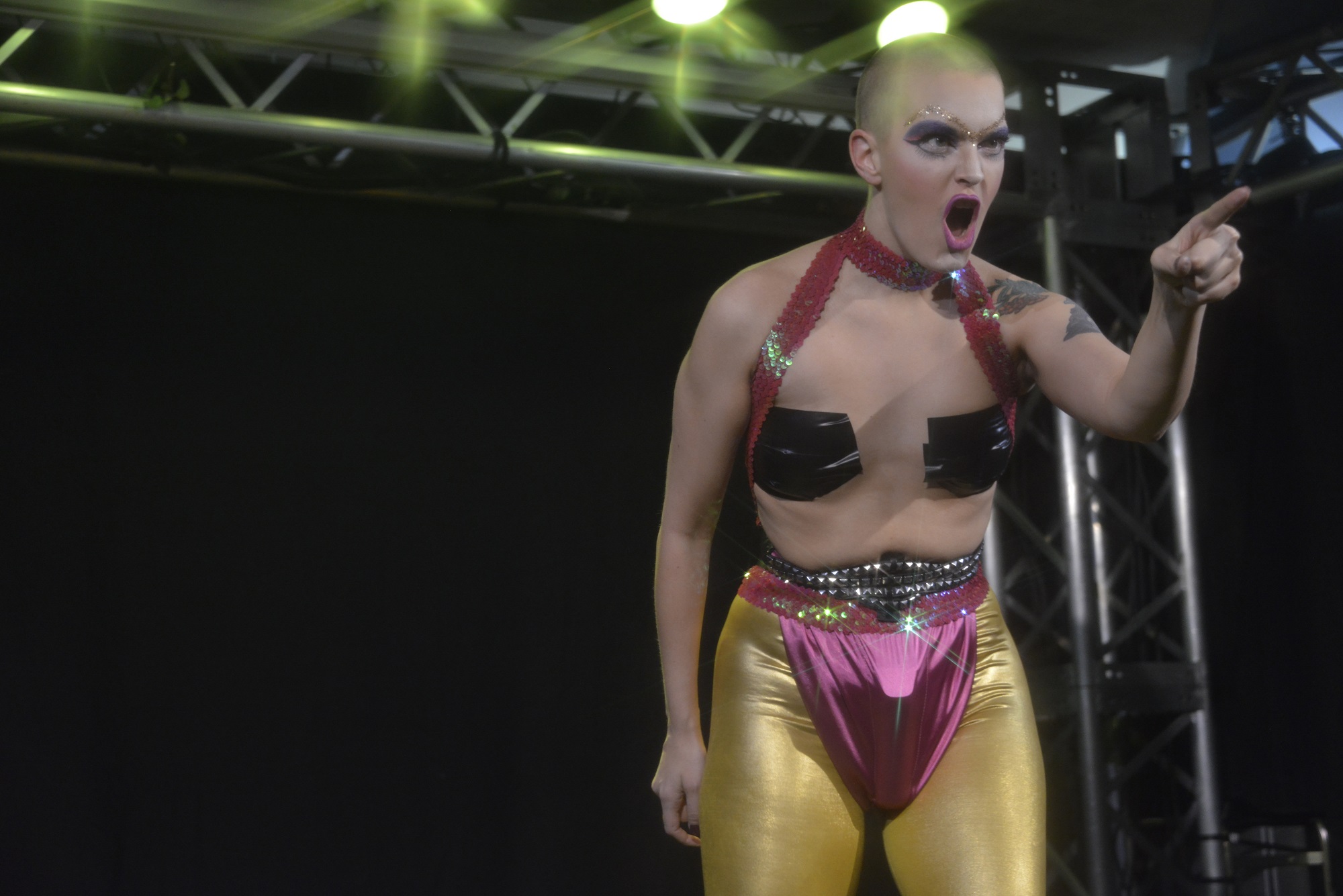 Kielitoimiston sanakirja määrittelee, että drag show on ”naisiksi pukeutuneiden miesten show-esitys”. Kanneltalon kahvilassa lavalle asteli kuitenkin ehkä jopa enemmän naisia kuin miehiä. Monia esiintyjistä oli myös mahdotonta lokeroida tyyliin ”mieheksi pukeutunut nainen” tai ”naiseksi pukeutunut mies”. Olikin riemastuttavaa nähdä, miten yhteiskunnan normittamia sukupuolimääritelmiä tarkasteltiin lavalla ja rajoja venytettiin suuntaan jos toiseen. Sukupuolten moninaisuus sai rönsyillä juuri niin vapaana kuin se tosielämässäkin rönsyää.