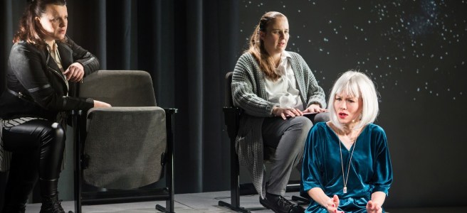 + Näyttelijät. Erityisesti konsultti Dora (Hanna Seppä) on virkistävän omituinen ja yllättävä ilmeitään ja eleitään myöten. Kikkaa (Kate Viljamaa) kohtaan on pakko tuntea sympatiaa. Nora Raikamo tekee myös hienon roolin uupuneena ja harmaana Niinana. Katsojalle tulee tosiaan olo kuin hän olisi tullut vähän oudoksi osoittautuvaan (tai no, aika sekopäiseen) seminaariin.