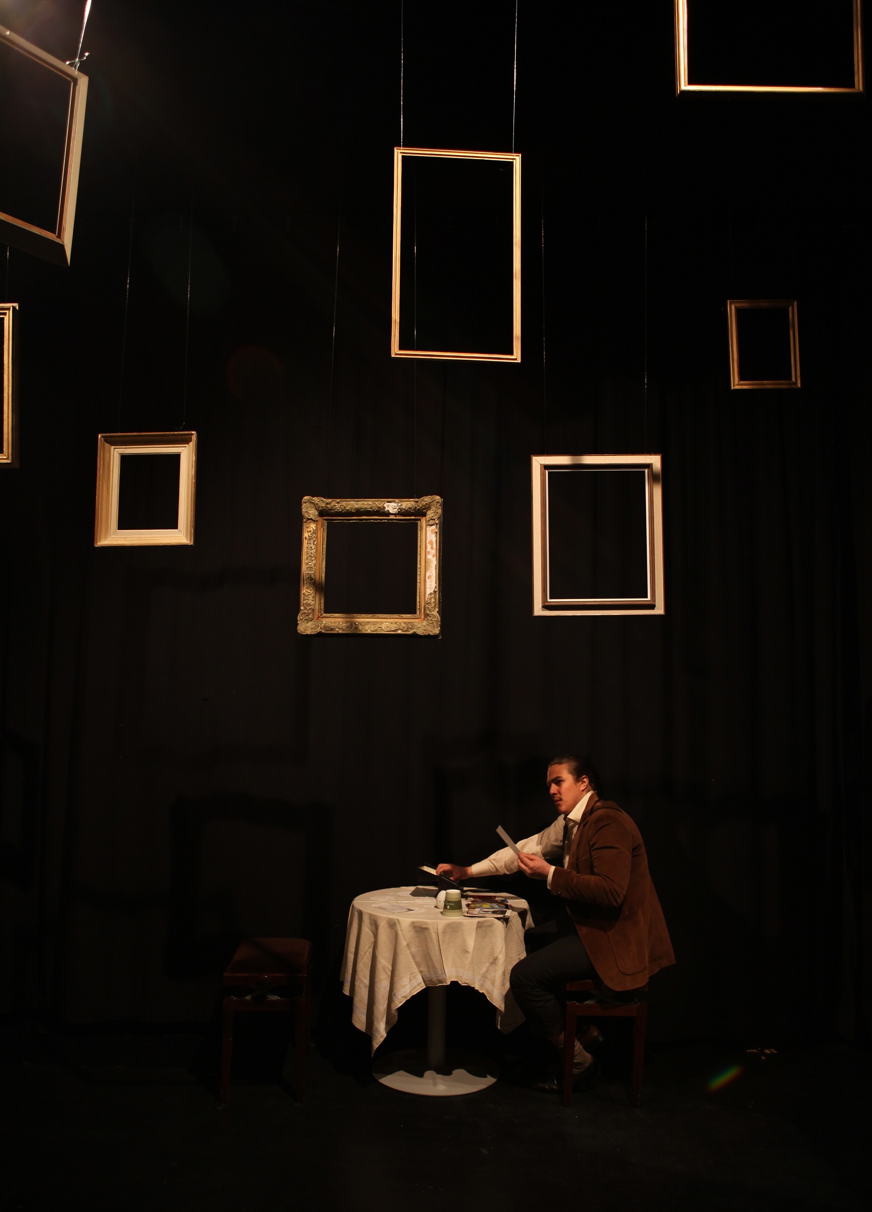 No niin, sinua on varoitettu, joten jatketaanpa sitten: Ensimmäisessä huoneessa katsojat ohjataan gallerian avajaisiin. On tyhjiä kehyksiä, joihin voi asettua arvioitavaksi, peilejä ja kaksi illan emäntää ja yksi isäntä viihdyttämässä vieraita. Postikorteissa lukee enimmäkseen imartelevia määritelmiä kortin vastaanottajasta. Välillä pääsemme pisteyttämään esiintyjien ulkonäköä.